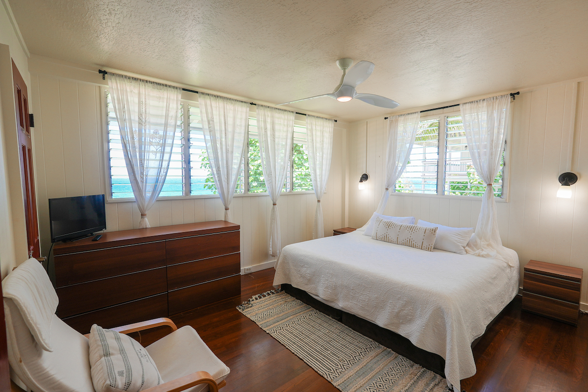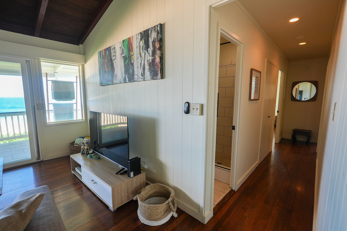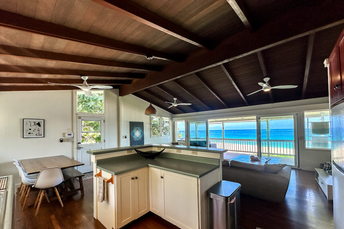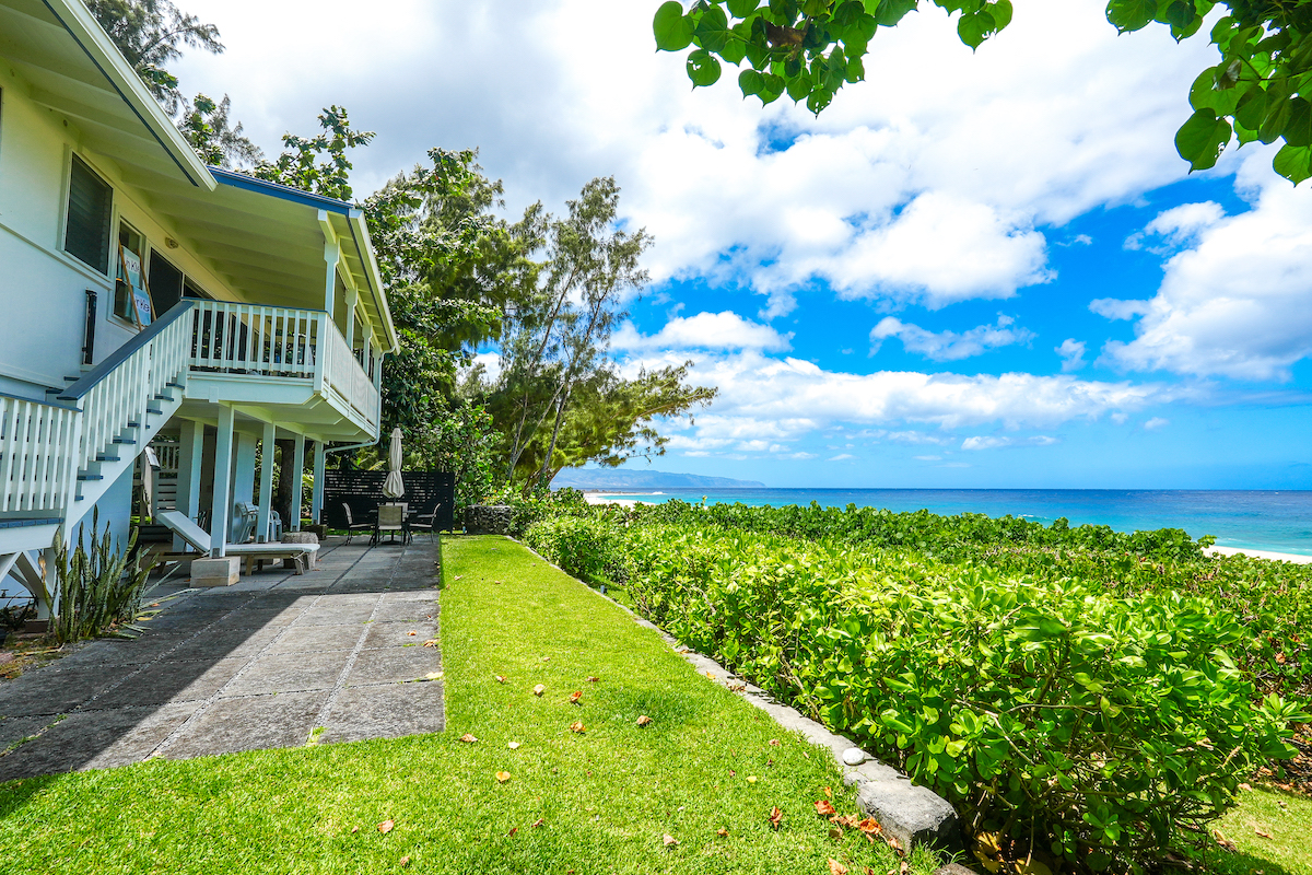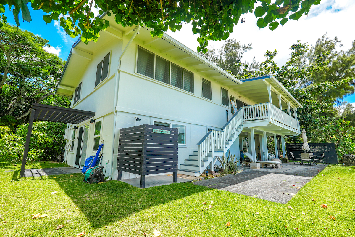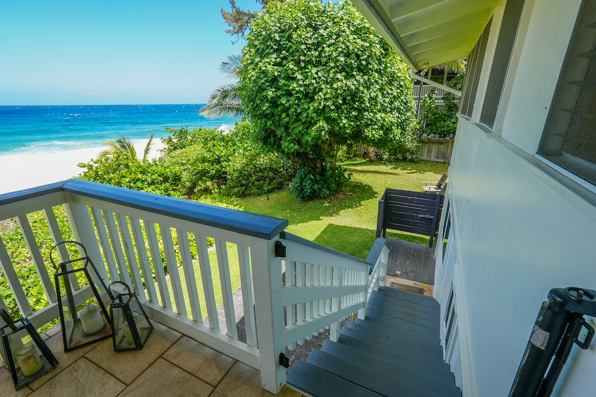 Escape to this incredible 4-bedroom, 3-bathroom beachfront retreat, perfectly situated in an ideal location, close to the grocery store, food trucks, famous surf breaks and other tourist attractions. Let the sound of crashing waves lull you to sleep! With 3 Bedrooms and 2 Bathrooms upstairs, and a complete brand-new Studio downstairs.