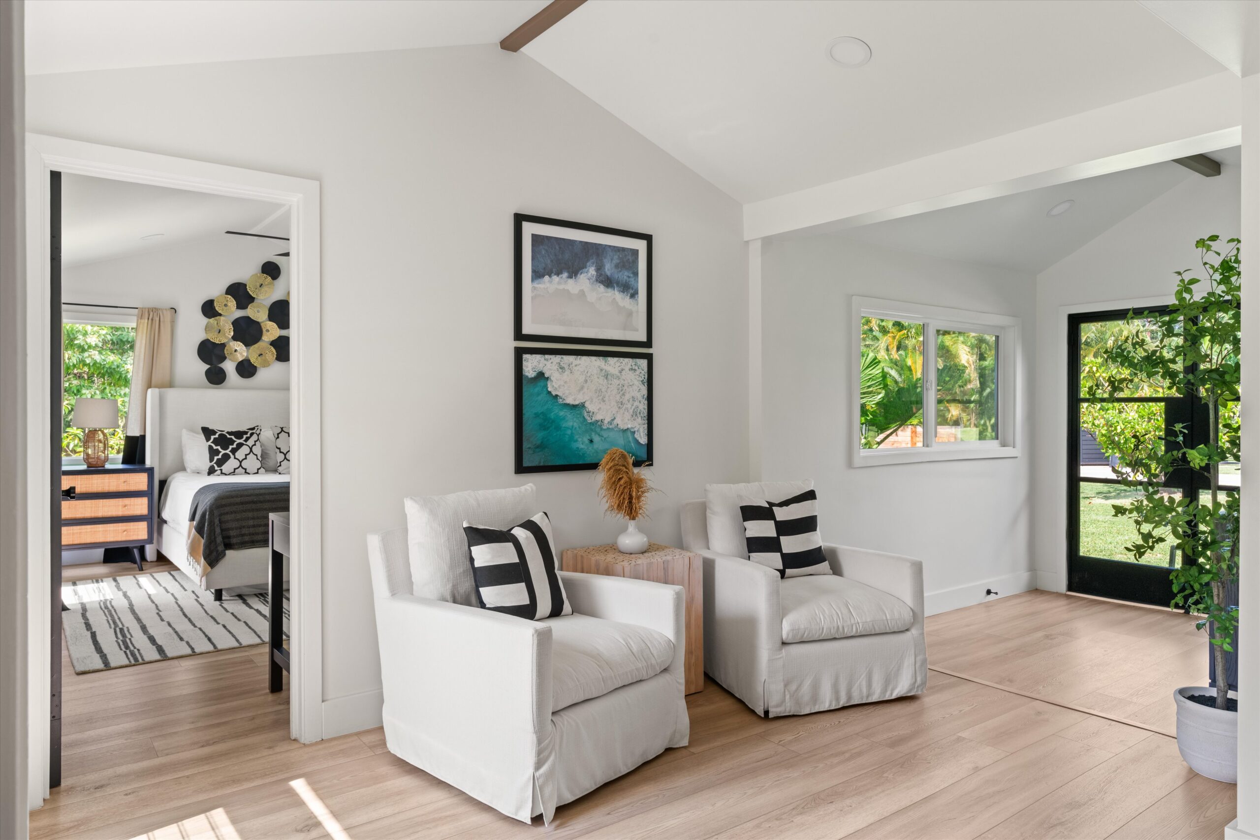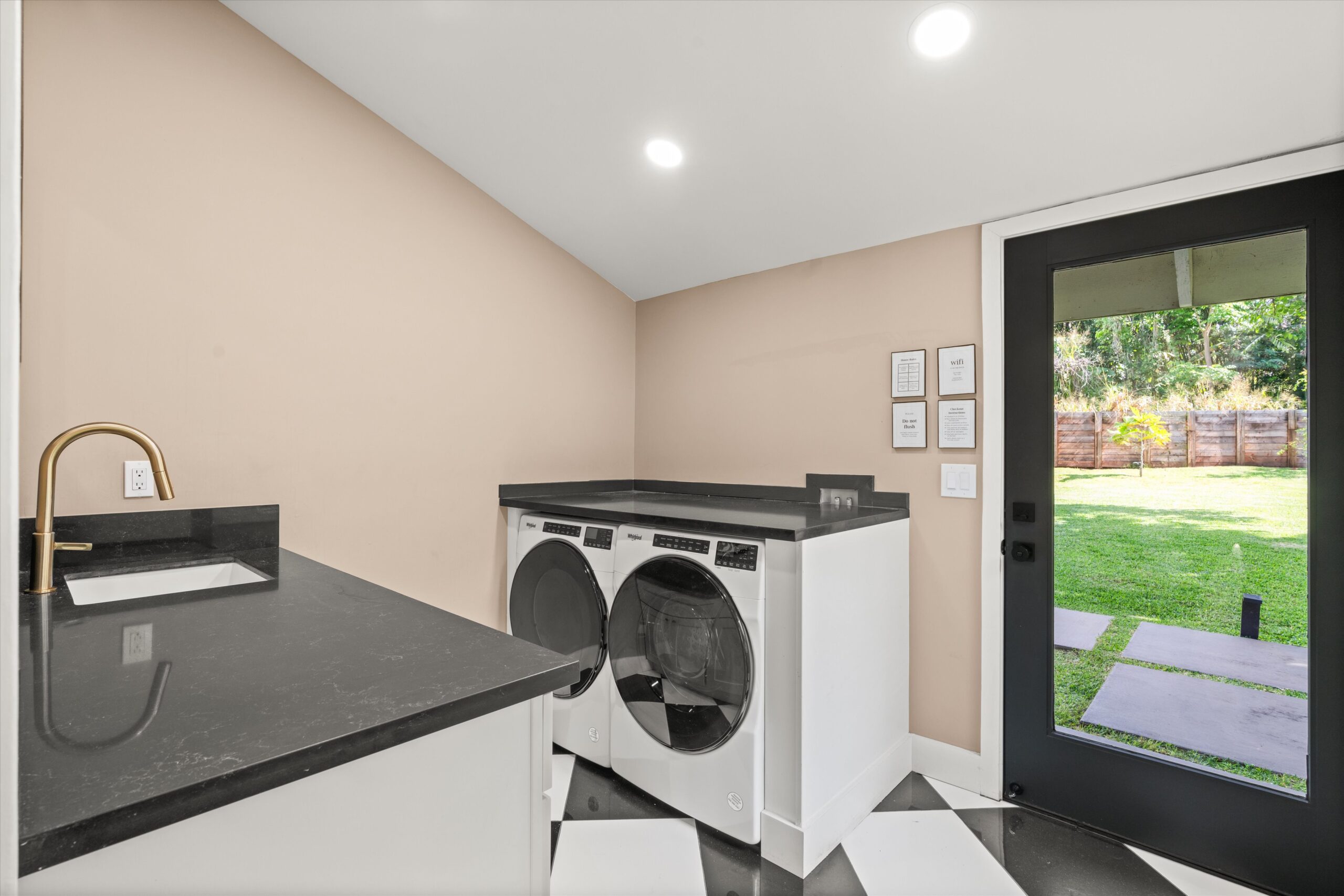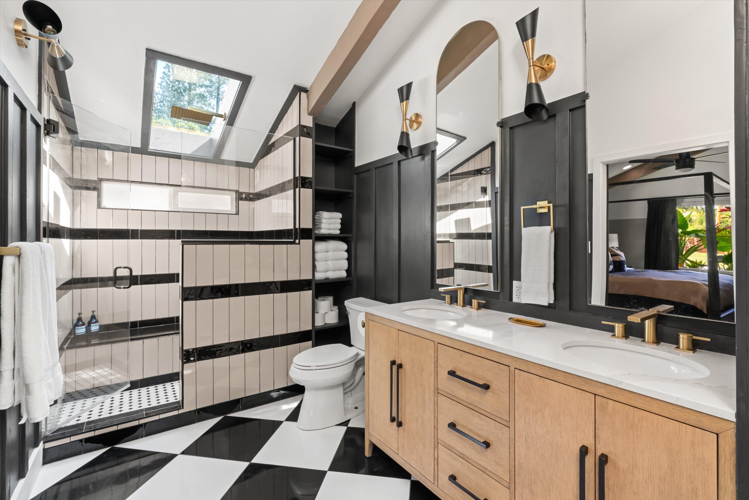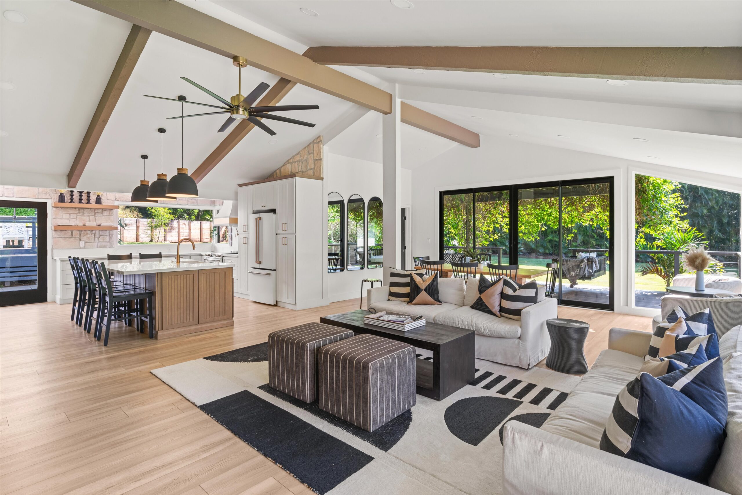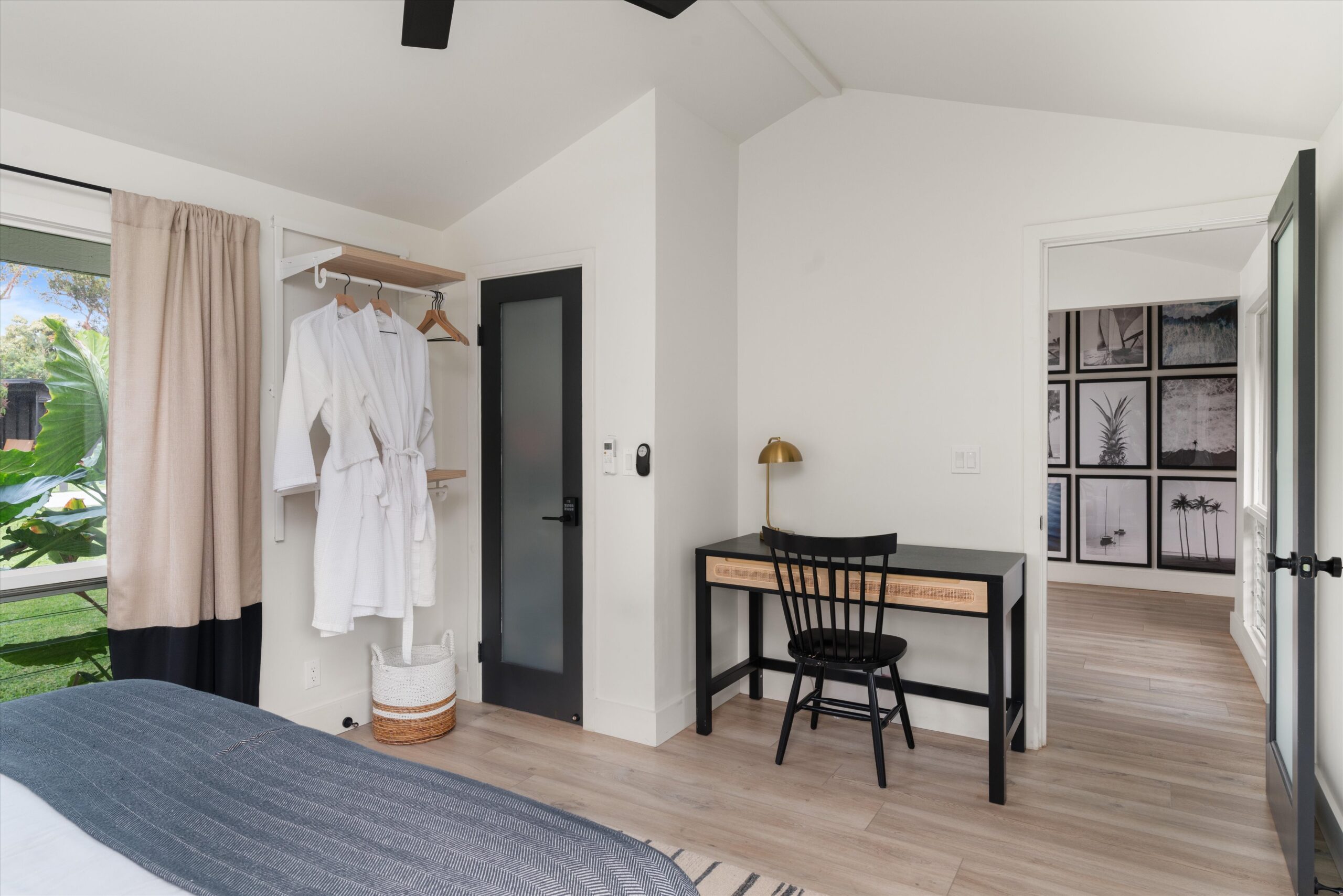 The detached guest house provides a peaceful escape with its own kitchen and private deck—perfect for quiet morning coffees or unwinding after a day at the beach. The lushly landscaped grounds feature a backyard oasis, where you can relax on the lanai, complete with charming bench swings and ample seating to enjoy Hawaii’s warm breezes.