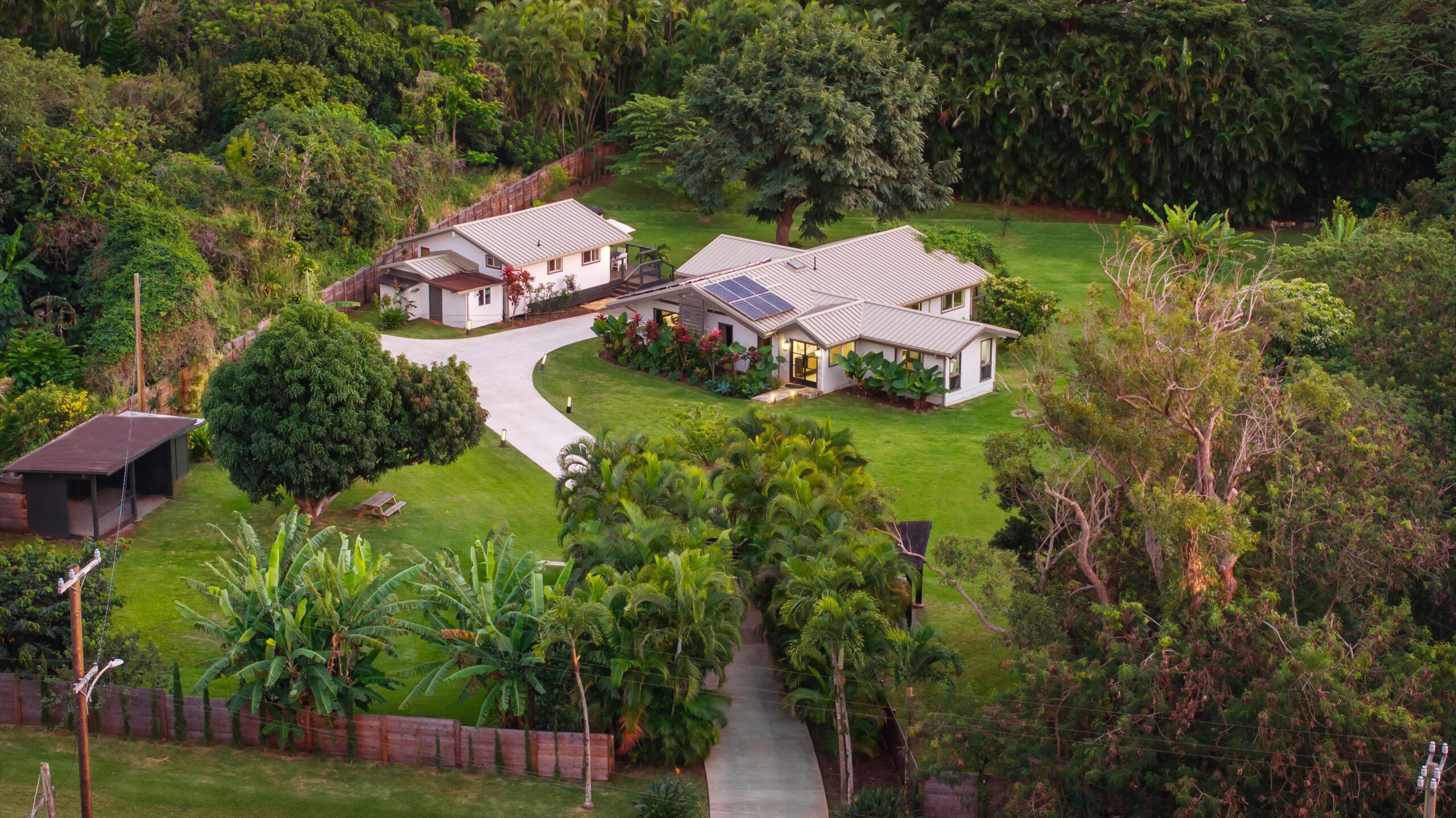 Welcome to The North Shore Estate, a private and luxurious family retreat on Oahu’s stunning North Shore. This recently renovated estate offers all the comforts of home, with added touches of island elegance and tranquility. The main house features three spacious, air-conditioned bedrooms and two bathrooms, including a primary bath that boasts a skylight rain shower and a freestanding tub under a sparkling chandelier. The custom kitchen is fully stocked and equipped with top-of-the-line appliances, ready for any culinary adventure.