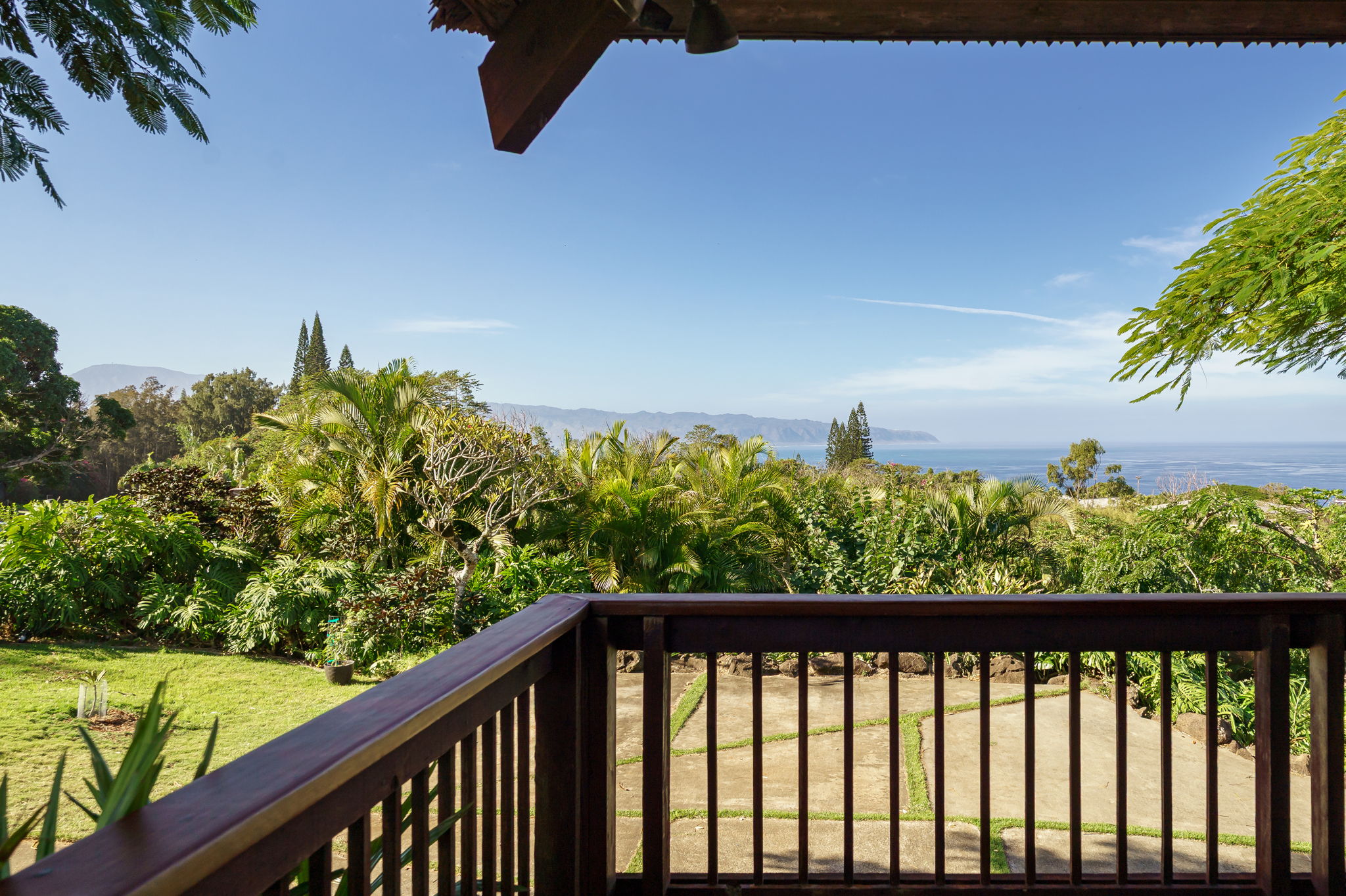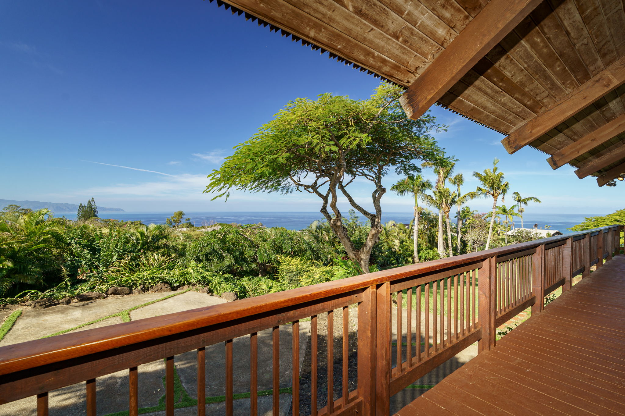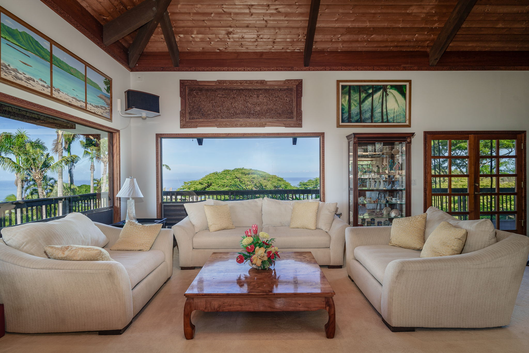 Enjoy stunning ocean views from the upstairs unit’s living room or unwind on the wraparound covered lanai with an outdoor sofa—perfect for taking in breathtaking sunsets.