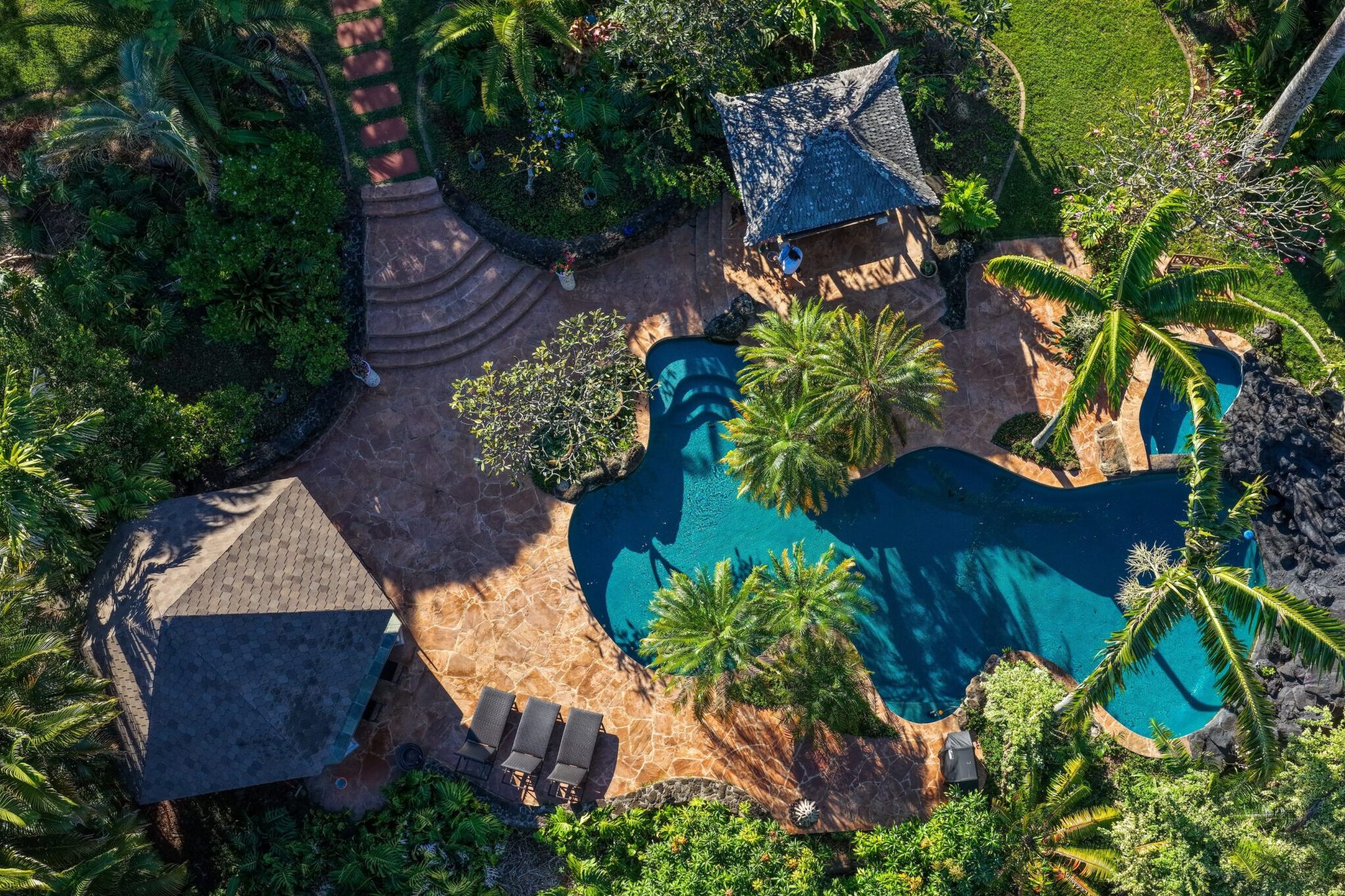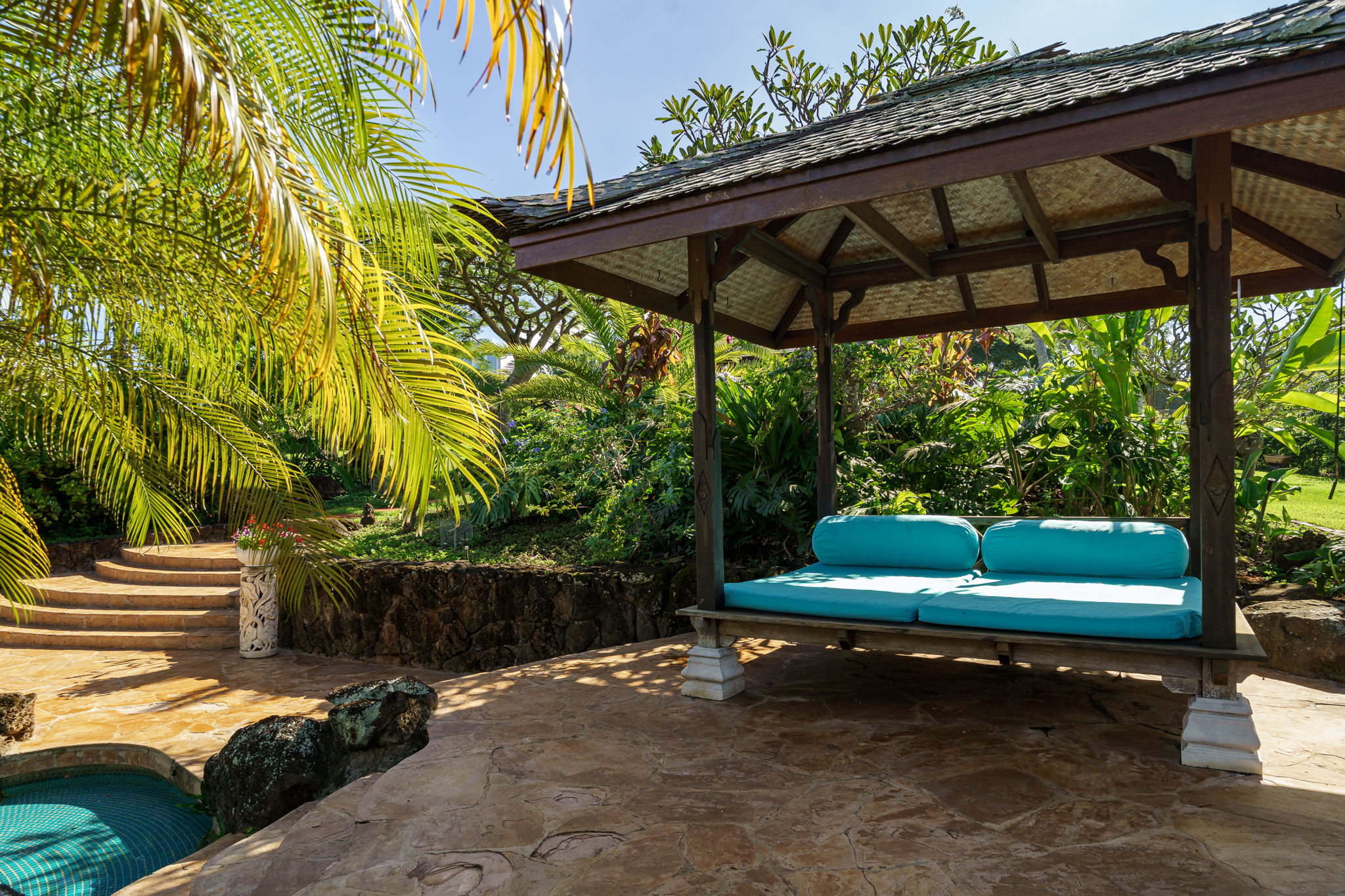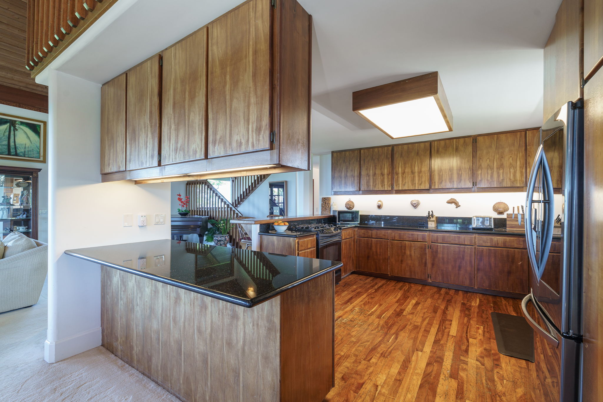 Enjoy stunning ocean views from the upstairs unit’s living room or unwind on the wraparound covered lanai with an outdoor sofa—perfect for taking in breathtaking sunsets.